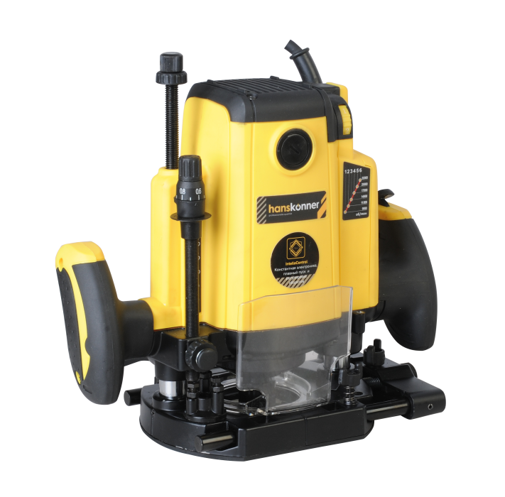 2000W, 12000-23000 об/м, цанга 6,8,12 мм, глубина до 70 мм, диам. фрезы 60 мм, плавный пуск, константная электроника, регулятор оборотов, параллельный упор, переходник для пылесоса, коробка