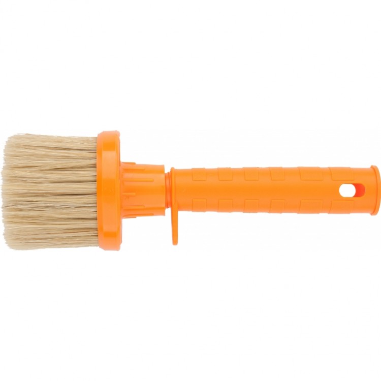 Маховая кисть Matrix для фасадных работ 83397 диаметром 80 мм предназначена для окрашивания грубых шероховатых поверхностей и обширных участков. Используется при проведении фасадных работ. Рабочая часть изготовлена из высококачественной натуральной щетины (показатель ТОПС не ниже 70%) с расщепленными кончиками, которая набирает и удерживает большой объем краски, — это обеспечивает высокую производительность кисти. Щетина устойчива к воздействию агрессивных сред, поэтому может использоваться с лакокрасочными материалами на основе растворителей.