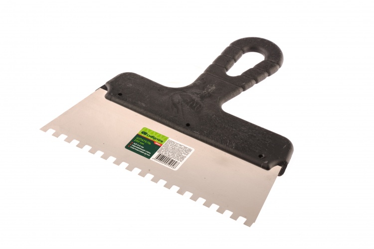 Шпатели с прямоугольными зубьями применяются для разравнивания клеевых растворов с последующей укладкой облицовочного материала: керамическая плитка, натуральный камень и др.