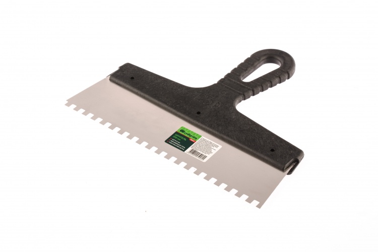 Шпатель из нержавеющей стали, 250 мм, зуб 6 х 6 мм, пластмассовая ручка Сибртех (85465)