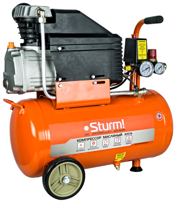 220V, 1600W, бак 24 литра, 250 л/мин, 8 Bar, масляный, поршневой