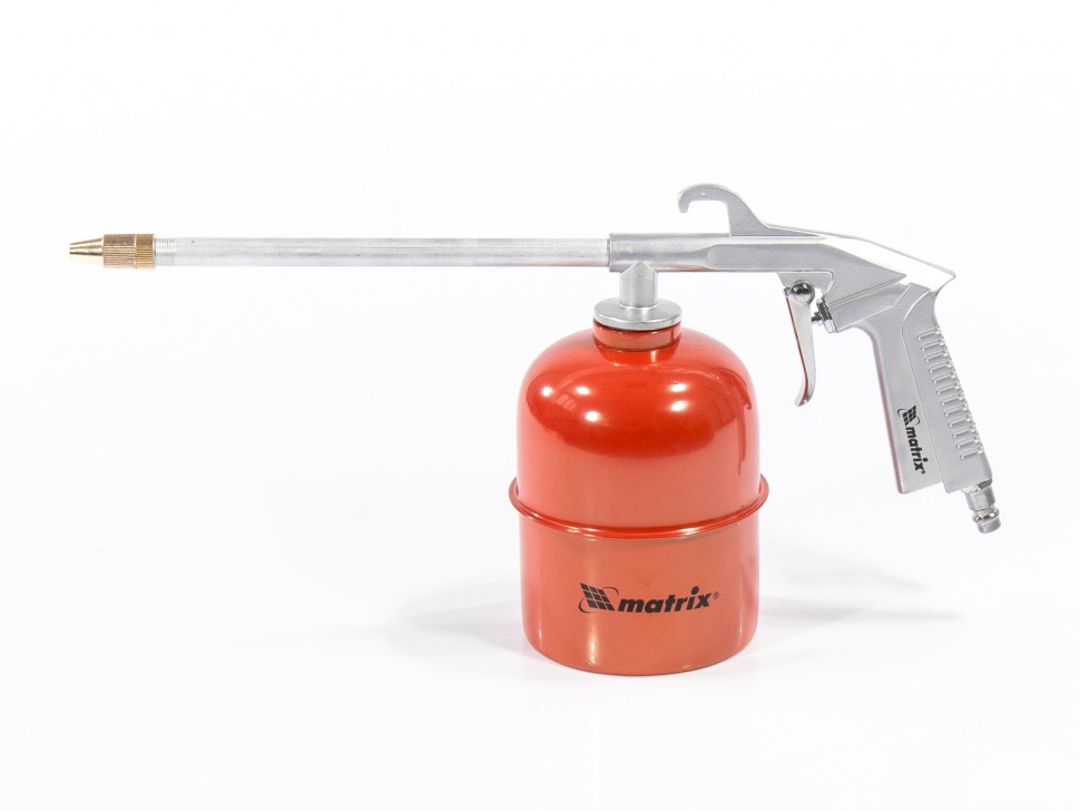 Моечный пневмопистолет Matrix 57340 предназначен для очищения и обезжиривания различных поверхностей (ковров, мебели, полов, плиток и т.д.) потоком воды под воздействием сжатого воздуха. Также он подходит для обработки рабочей зоны различными жидкостями, например, для смазывания металлических изделий карбоном и покрытия автомобиля мовилем. Длинный носик обеспечивает работу в самых труднодоступных местах. Преимущества: Инструмент оснащен алюминиевой емкостью для жидкости (воды, масла, густого состава) объемом 0,75 л, что делает его мобильным и избавляет мастера от необходимости подключения дополнительного шланга. Работа на сжатом до 5 бар воздухе гарантирует высокий рабочий ресурс пневмопистолета и позволяет работать непрерывно до иссушения бачка с жидкостью. Настраиваемый диаметр сопла позволяет регулировать степень распыления и решать различные задачи одним инструментом. Рукоятка с рельефным покрытием хорошо ложится в руку, это повышает удобство эксплуатации. Высокий уровень пожарной безопасности позволяет свести к минимуму риск возникновения аварийных ситуаций. Малый вес 780 грамм обеспечивает комфортную работу без усталости и перенапряжения рук.