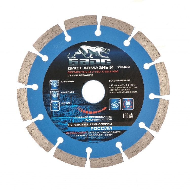 Сегментный алмазный диск Барс ф150х22,2 мм 73063 для сухого резания устанавливается в качестве оснастки на УШМ и штроборезы с соответствующим посадочным диаметром. Он пригодится домашним мастерам и профессионалам для сухой резки камня, кирпича, бетона и гранита, позволит быстро справиться с большим объемом работ.