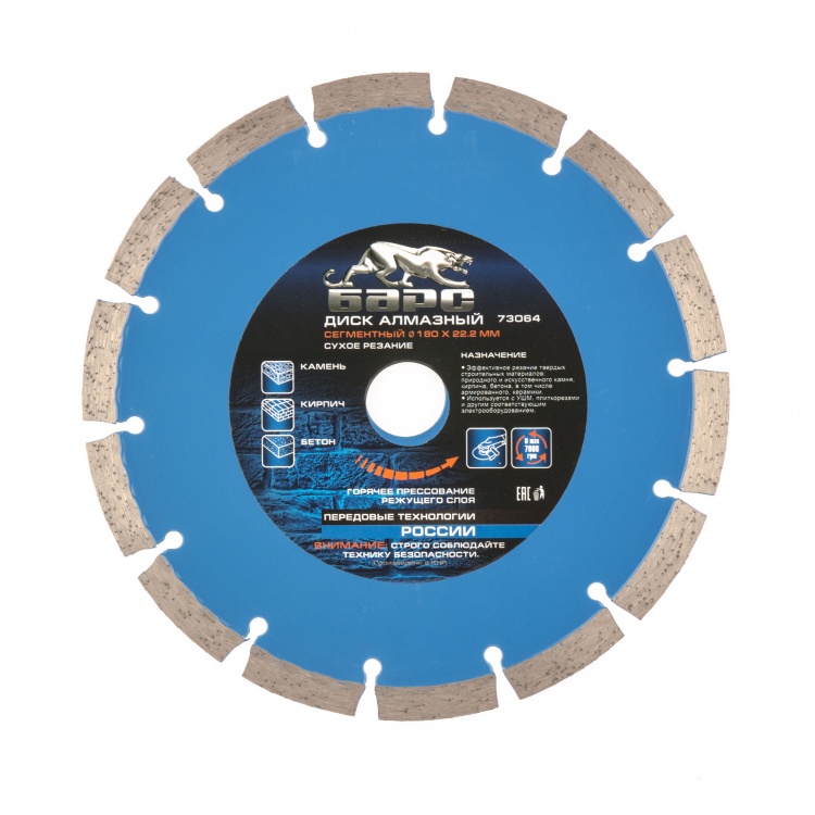 Сегментный алмазный диск Барс ф180х22,2 мм 73064 для сухого резания устанавливается в качестве оснастки на УШМ и штроборезы с соответствующим посадочным диаметром. Он пригодится домашним мастерам и профессионалам для сухой резки камня, кирпича, бетона и гранита, позволит быстро справиться с большим объемом работ.