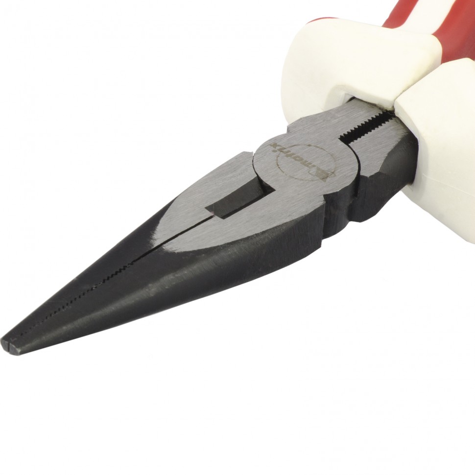 Прямые длинногубцы Matrix Premium 17185 длиной 160 мм, с трехкомпонентными рукоятками, позволяют захватывать и удерживать мелкие детали разной формы, загибать и перекусывать проволоку, прутки, провода. Облегчают работу в труднодоступных местах. Длинногубцы пригодятся слесарям, монтажникам и строителям.ПреимуществаВысокий ресурс — рабочие части прошли индукционную закалку до твердости 49-52 HRC.Долговечность — металлическая фосфатированная поверхность частично отшлифована, поэтому инструмент устойчив к коррозии и износу.Безопасность — широкие упоры на рукоятках предотвращают соскальзывание пальцев к рабочим частям и снижают риск травмирования.Комфортная работа — эргономичные трехкомпонентные рукоятки обеспечивают надежный хват и снижают нагрузку на руку мастера.