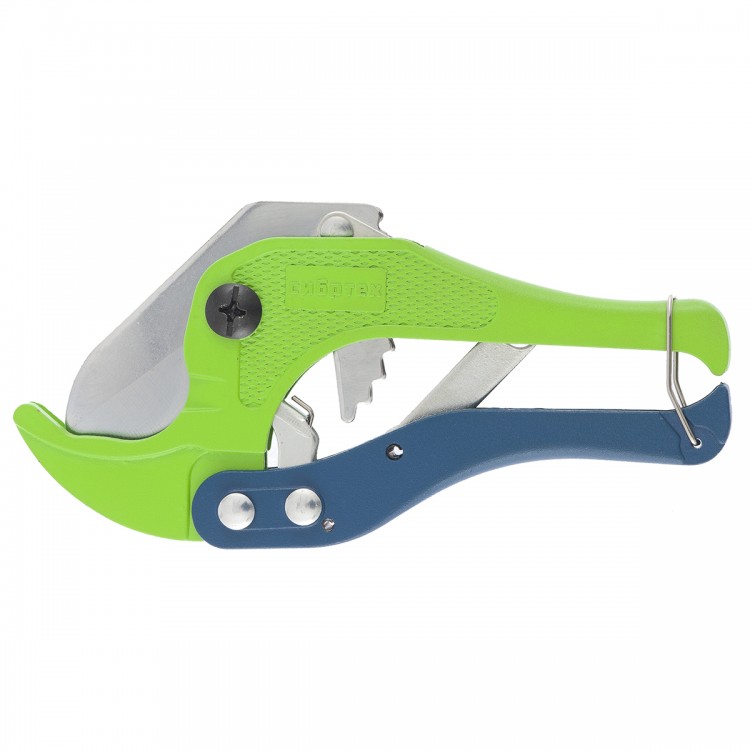 Ножницы Сибртех 78404 с порошковым покрытием рассчитаны на резку изделий из пластика диаметром до 42 мм. Они используются в быту для работы с трубопроводными системами. Благодаря храповому механизму ножницы легко разрезают материалы при минимальных усилиях от мастера.