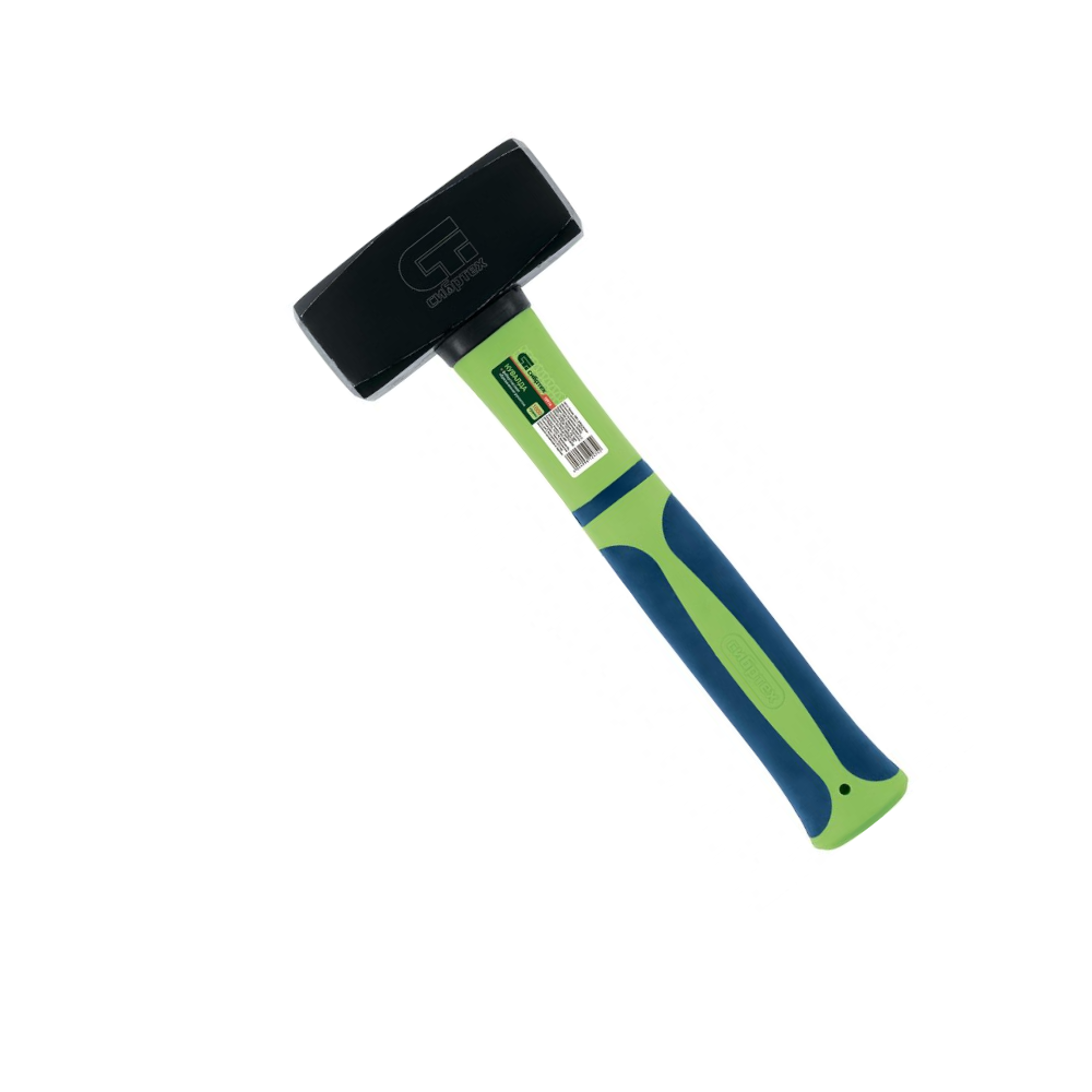 Кувалда Сибртех 10916 с бойком весом 1500 г, общей длиной 260 г и фибергласовой обрезиненной рукояткой предназначена для нанесения аккуратных и точных ударов. Применяется для забивания метизов, выравнивания или сгибания металлических поверхностей. Устойчива к деформациям и долговечна благодаря бойку, изготовленному методом ковки и отшлифованному с двух сторон. Кувалда подходит для использования в полупрофессиональной и бытовой сфере.ПреимуществаПрочность и надежность - боек изготовлен из среднеуглеродистой стали 45, а рабочие части закалены токами высокой частоты и имеют твердость 40-45 HRC.Устойчивость к коррозии - рабочая часть кувалды покрыта черным лаком.Надежная фиксация рукоятки - прочная смола не позволяет бойку соскочить.Безопасность - от головы не отколются мелкие кусочки, т.к. на ударных поверхностях сняты фаски.Низкая отдача - вибрация от ударов поглощается двухкомпонентной пластиковой рукояткой с фибергласовым стержнем.Комфорт при работе - благодаря резиновой вставке рукоятка не скользит в руке.