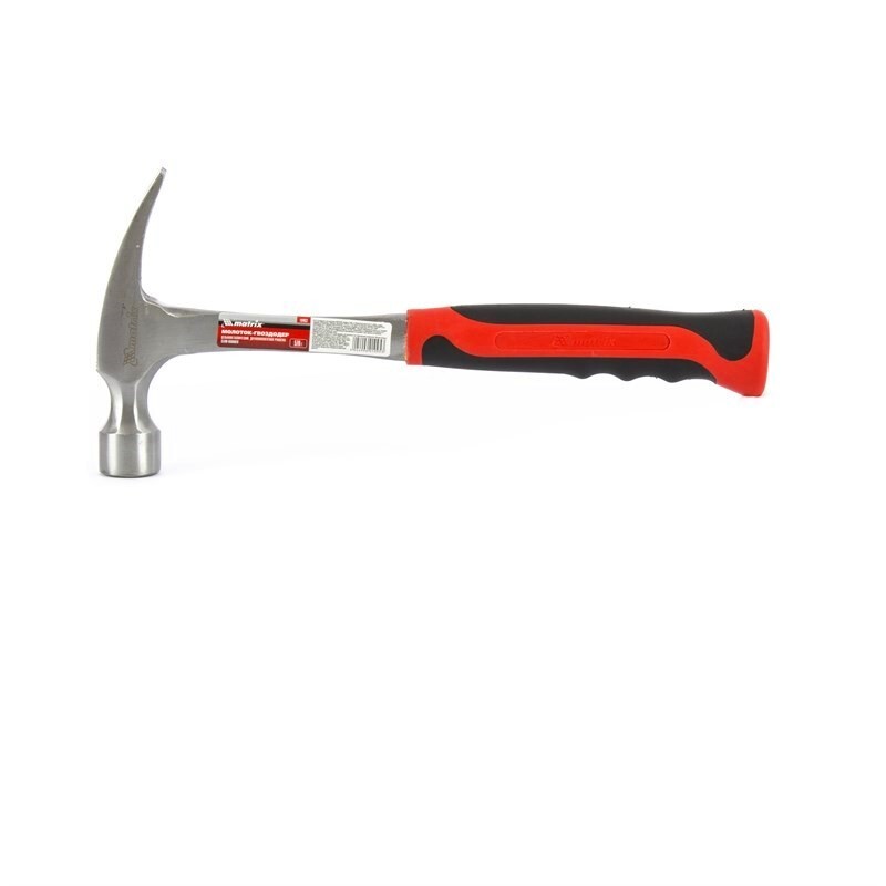 Цельнометаллический молоток-гвоздодер Matrix 10463 с головкой весом 570 г и двухкомпонентной рукояткой — ударный инструмент с функцией извлечения гвоздей. У рабочей головки с одной стороны имеется круглый боек для нанесения ударов, а с другой — плоский изогнутый носок с клиновидной прорезью, позволяющей подцепить шляпку гвоздя. Молоток-гвоздодер используется в профессиональной сфере, а также подходит для решения бытовых задач.ПреимуществаМолоток изготовлен методом ковки из стали 45 при строгом соблюдении режима термообработки, что обеспечивает высокое качество и надежность инструмента.Цельнометаллическая конструкция обладает максимальной прочностью, исключает выпадение рукоятки и повреждение инструмента в случае промаха.Рабочие части закалены до твердости 45-55 HRC, поэтому устойчивы к износу и выдерживают неоднократные ударные нагрузки без риска деформации.Обрезиненная эргономичная рукоятка обеспечивает надежный хват и не выскальзывает из ладони, что обеспечивает комфорт и безопасность эксплуатации.