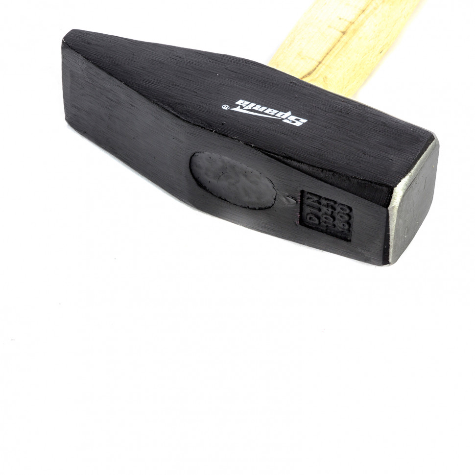 Слесарный молоток Sparta 102215 длиной 420 мм, с квадратным бойком весом 1500 г и деревянной рукояткой предназначен для нанесения ударов при работе с металлом и забивании гвоздей. Позволяет выполнять большой объем работ с крупным крепежом. Заостренный с одного конца боек облегчает работу в труднодоступных местах. Молоток пригодится на стройплощадке и во время ремонта, а также будет полезен в домашнем хозяйстве.ПреимуществаГоловка изготовлена из среднеуглеродистой стали 45 методом ковки и отфрезерована, что обеспечивает прочность и устойчивость молотка к деформациям.Рабочие части бойка закалены до твердости 40-45 HRC, поэтому он не разрушится при ударах.Головка надежно зафиксирована на рукоятке путем расклинивания и дополнительно проклеена эпоксидным клеем, поэтому держится крепко и не соскользнет во время работы.Головка покрыта черным лаком для защиты от образования коррозии.Гладкая деревянная рукоятка не скользит в руке, а бесцветное лаковое покрытие защищает ее от рассыхания.