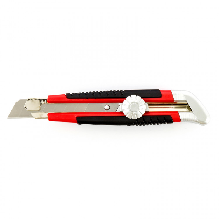 Инструмент оснащен винтовым фиксатором, надежно удерживающим выдвижное лезвие в заданном положении.