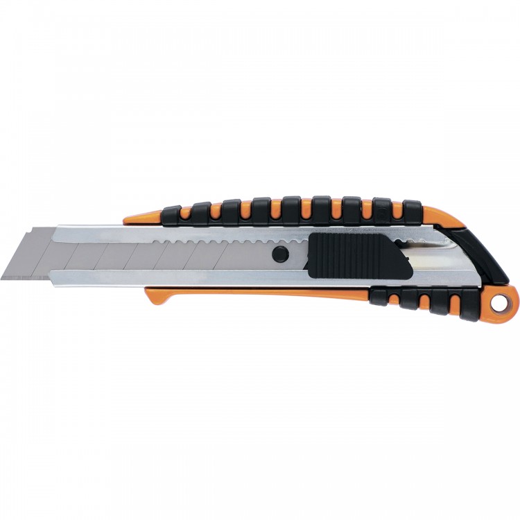 Нож Sparta 78982 с выдвижным лезвием шириной 18 мм и металлической направляющей выполнен в металлическом двухкомпонентном корпусе. Рассчитан на бытовое применение, пригодится во время ремонта и для занятий творчеством. С его помощью можно разрезать картон, линолеум, кожу, раскроить обои. Выдвижной нож удобен и безопасен в использовании, т.к. лезвие легко убирается в корпус.