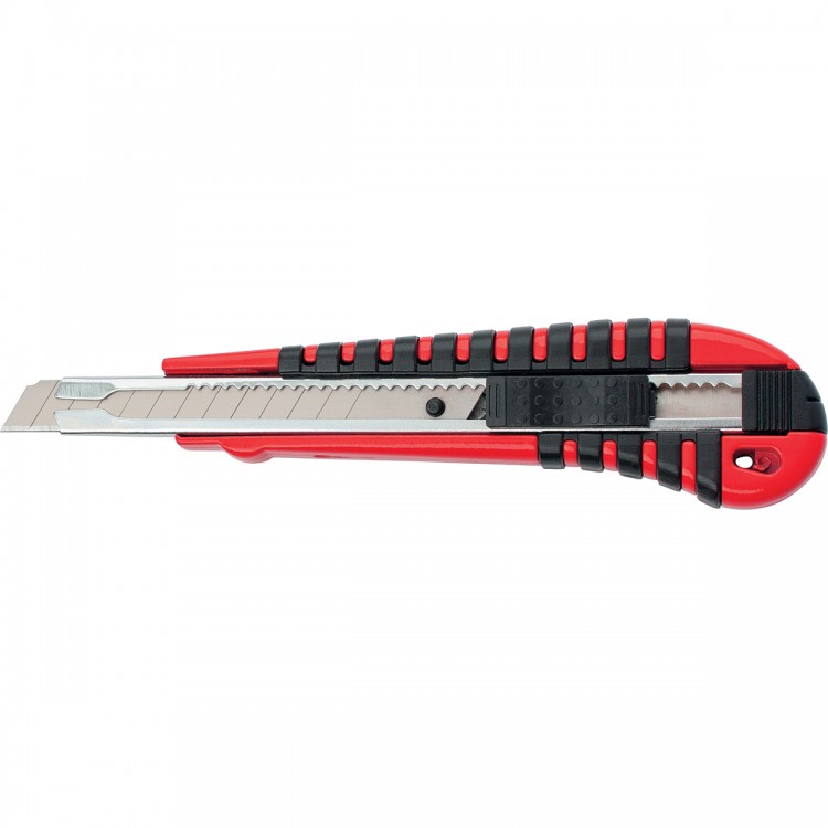 Нож Matrix 78937 с выдвижным лезвием шириной 9 мм, металлической направляющей и эргономичной двухкомпонентной рукояткой пригодится в мастерской, для бытового использования, проведения ремонтных работ, а также для рукоделия. Он с легкостью разрезает бумагу, картон и более плотные материалы, например, кожаные изделия.