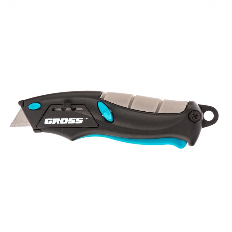 Ремонтно-монтажный нож Gross МИНИ 78873 длиной 100 мм, с трехкомпонентной рукояткой, автоматическим выбросом и возвратом лезвия, с 2 запасными лезвиями, используется для разрезания бумаги, обоев, картона, линолеума, кожи. Прочное трапециевидное лезвие из высококачественной японской стали SK-2 толщиной 0,6 мм и шириной 9 мм не ломается и долго не тупится. Нож рекомендован для профессионального применения, а также будет полезен в быту.