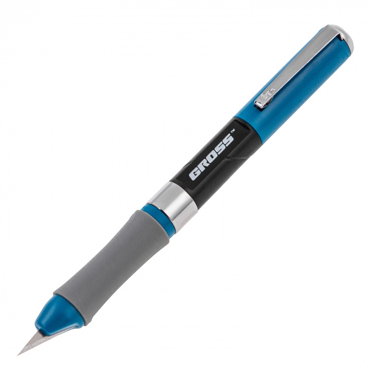 Нож для дизайна Gross 78885 длиной 150 мм, с выдвижным перовым лезвием, двухкомпонентной рукояткой, металлической клипсой для фиксации и 2 запасными лезвиями, предназначен для точной резьбы по дереву. Используется при проведении мелких столярных работ, пригодится также для занятий творчеством.ПреимуществаПрочность и износостойкость — лезвие шириной 9 мм изготовлено из высококачественной японской стали SK-5 толщиной 0,5 мм.Простое использование — чтобы выдвинуть лезвие, достаточно повернуть нижнюю часть корпуса вокруг своей оси.Расходники в комплекте — нож поставляется с 2 сменными полотнами, а значит, их не придется покупать отдельно.Продуманное хранение запасных лезвий — в верхней части корпуса предусмотрен специальный отсек для размещения расходников.Эргономичность — область хвата прорезинена, что снижает утомляемость при длительном использовании ножа.Удобная металлическая клипса — по окончании работ нож можно закрепить на ремне или в кармане.