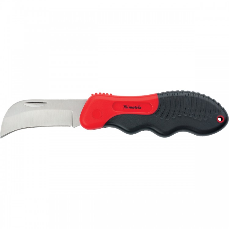 Складной нож электрика Matrix 78986 с изогнутым лезвием и эргономичной двухкомпонентной рукояткой используется для рассечения проводов и снятия с них изоляции. Изогнутое лезвие длиной 60 мм удобно для работы в стесненных условиях. Инструмент предназначен для электромонтажных работ, подходит для бытового применения.