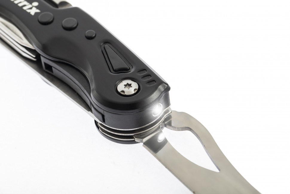Многофункциональный нож Matrix 17625 длиной 107 мм, 11 функций, в чехле, — универсальный инструмент, который будет полезен дома, на даче и в гараже, а также в поездке, походе, на пикнике, рыбалке или охоте. Ножом можно резать различные материалы и продукты, пилой — срезать тонкие ветки, а шилом — проделывать отверстия. Открывалки удобно использовать для банок. Пилка для ногтей пригодится в быту.ПреимуществаНож изготовлен из стали и рассчитан на длительную эксплуатацию.Общая длина ножа в разложенном состоянии составляет 107 мм, поэтому он легко помещается в кармане, сумке и рюкзаке.Благодаря фонарику складной нож подсветит дорогу в темное время суток или плохо освещенную рабочую область.Входящий в комплект чехол обеспечивает безопасное хранение и транспортировку инструмента.