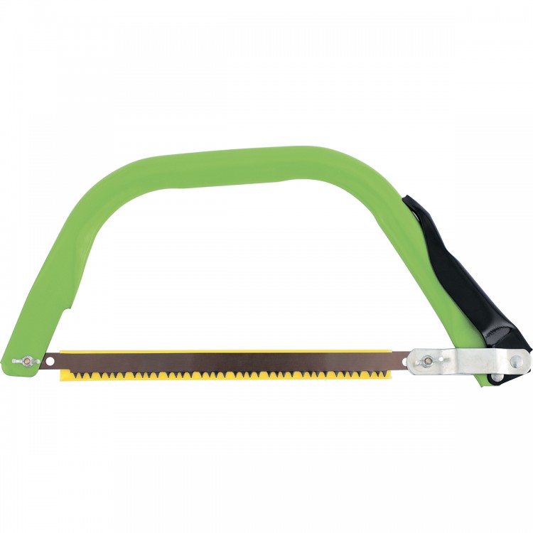 Лучковая пила Palisad 60418 с длиной рабочей части 300 мм, с возможностью быстрой смены полотна, используется для полупрофессионального применения: обрезки веток, распила вагонки, брусков и т.д. За счет формы зуба «волчий клык» с увеличенными галтелями пилой можно осуществить распил сухой и сырой древесины, фанеры, ДСП и т.д.