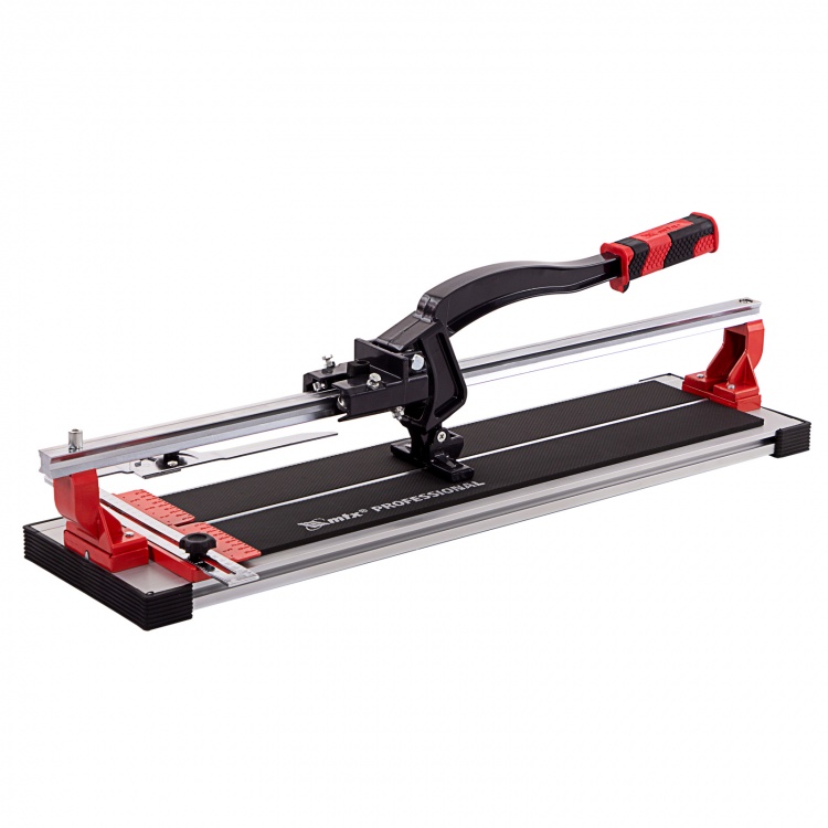Рельсовый плиткорез MTX 87688 поможет резать плитку длиной до 600 мм и толщиной до 16 мм. Пригодится в ходе проведения облицовочных работ для придания плитке необходимых размеров. Мощный разделитель справится с резкой не только керамической, но и керамогранитной плитки.ПреимуществаРежущий ролик выполнен из твердого сплава ВК-8, обеспечивающего его высокую износостойкость и эффективность работы.Направляющий рельс из стального сплава с антикоррозийным покрытием и шарикоподшипниковый механизм обеспечивают плавный и легкий ход каретки без люфта.Поворотный угольник-угломер используется для резки плитки под углом до 45 градусов и надежной фиксации заготовок.Прижимной обхват рельса каретки регулируется специальным болтами, в результате достигается полное отсутствие люфта между кареткой и рельсом и максимальная устойчивость рукоятки при резке.Инструмент снабжен удобной обрезиненной рукояткой для надежного захвата.Станина из алюминиевого сплава не утяжеляет конструкцию инструмента, поэтому его удобно транспортировать.