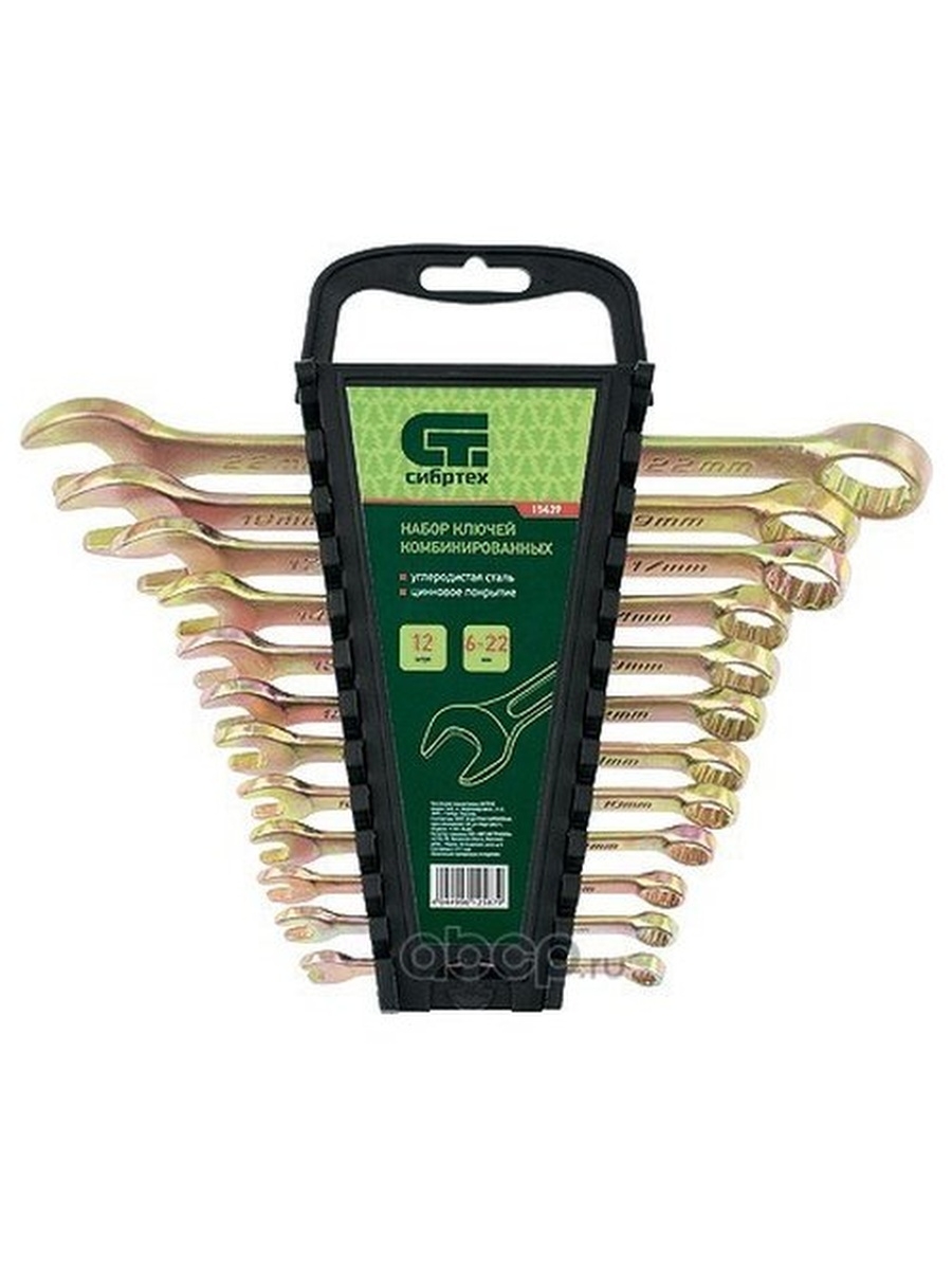 Набор комбинированных ключей Сибртех 15439 состоит из 12 инструментов, покрытых желтым цинком, и предназначен для слесарно-монтажных работ с резьбовыми соединениями размером от 6 до 22 мм. Наличие рожкового и кольцевого зева делает каждый ключ универсальным в применении. Накидные головки с 12-гранным профилем надежно удерживают крепежи, уменьшая риск их деформации. Ключи будут полезны при проведении строительных и ремонтных работ, пригодятся для сборки и разборки оборудования, а также необходимы в быту.ПреимуществаИнструменты изготовлены из прочной углеродистой стали 45, рабочая часть каждого ключа закалена до твердости 42 HRC, что соответствует требованиям ГОСТ.Накидные головки расположены под углом 15 градусов к плоскости ключей, что позволяет работать в труднодоступных местах.Желтое цинковое покрытие защищает от повреждений и коррозии.