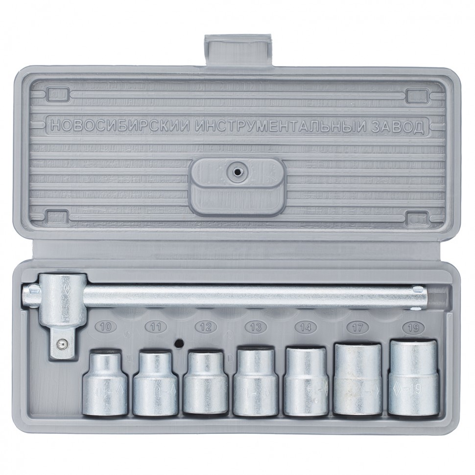 Набор шоферского инструмента № 1 НИЗ 13440 в пластиковом боксе используется для ремонта автомобиля и станет незаменимым помощником в дороге и гараже. В комплект входит вороток, применяемый при монтаже и демонтаже резьбовых крепежей, а также торцевые головки на 10, 11, 12, 13, 14, 17, 19 мм.ПреимуществаПрочность — инструменты изготовлены из инструментальной стали 40Х, устойчивой к динамическим нагрузкам.Коррозионная стойкость — вороток и торцевые головки оцинкованы для защиты от воздействия влаги.Надежная фиксация торцевой головки — благодаря шариковому фиксатору насадка не соскакивает с воротка.Удобное хранение и транспортировка — набор поставляется в прочном пластиковом кейсе.