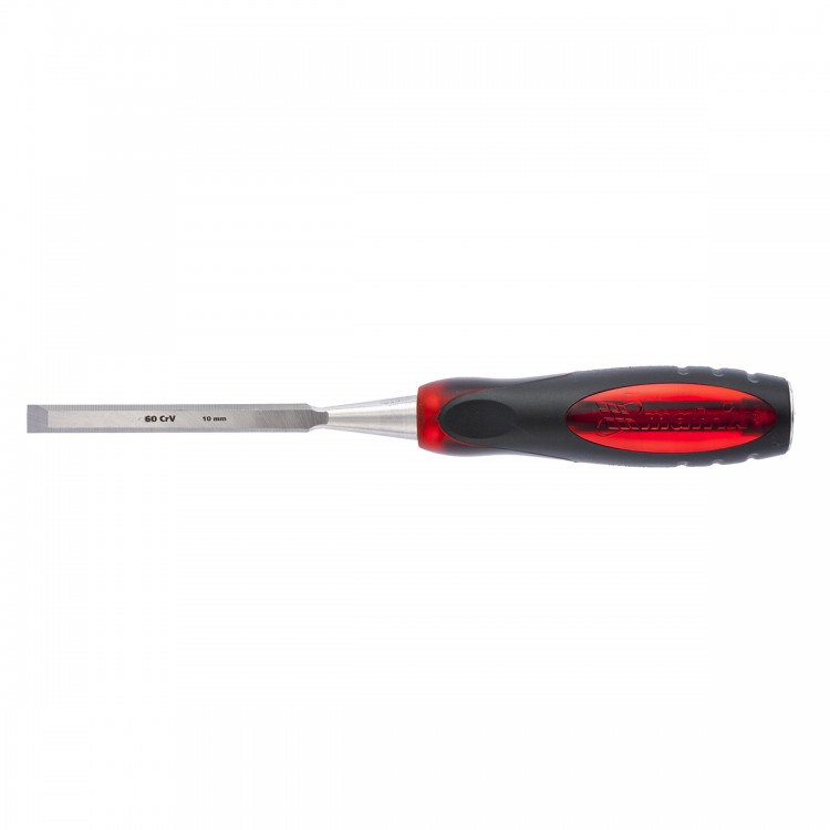Долото-стамеска Matrix «Тигровый глаз» 24505, 10 мм, с двухкомпонентной обрезиненной рукояткой, используется в столярном и плотницком деле, в производстве мебели. С его помощью можно вырезать углубления, формировать пазы, зачищать шипы и гнезда, снимать фаски. Долото-стамеска выдерживает удары киянкой или молотком, т.к. металлический затыльник защищает его от деформации.
