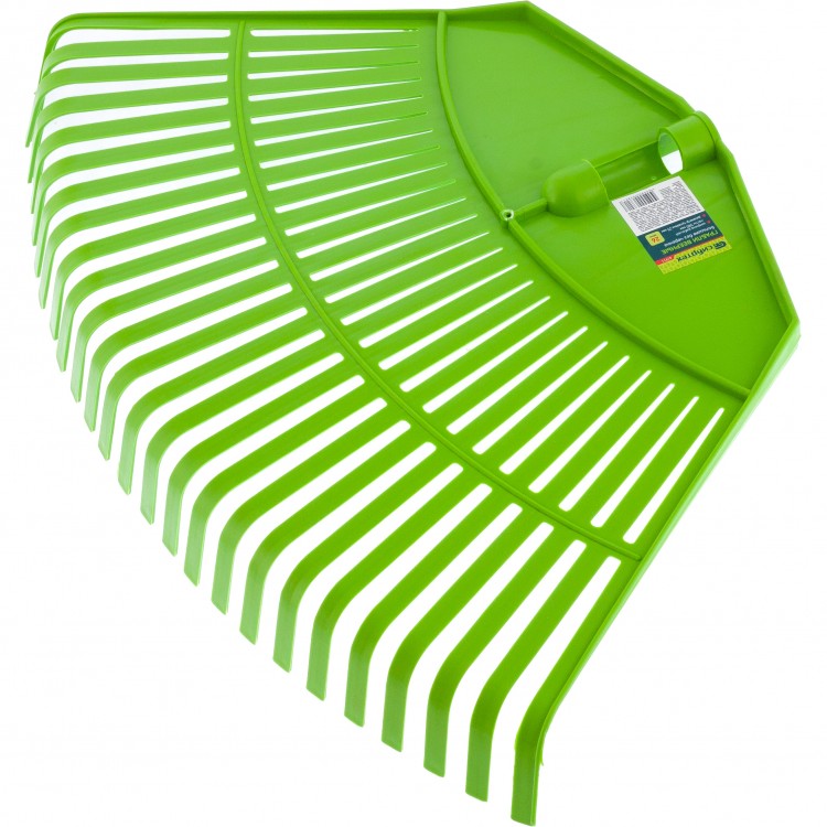 Грабли веерные пластиковые Сибртех 61711 с 26 плоскими зубьями, 580 мм, без черенка, предназначены для уборки газонов. Широкая рабочая часть обеспечивает максимальный охват поверхности, позволяя собрать с нее мусор и опавшую листву.