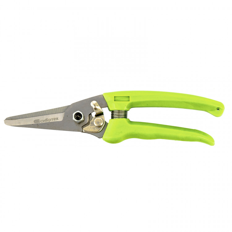 Цветочный секатор Сибртех 60494 длиной 205 мм, с пластиковыми рукоятками, — садовый инвентарь для обрезки молодых побегов и стеблей толщиной до 10 мм. Используется для ухода за растениями на даче, в саду и огороде, пригодится также в домашнем хозяйстве для разрезания картона, бумаги, ткани, подвязочного материала. Лезвия, движущиеся в параллельных плоскостях, производят чистый и ровный срез. Плотность смыкания лезвий можно изменить при помощи регулировочного винта.ПреимуществаЛезвия изготовлены из среднеуглеродистой стали, поэтому инструмент подходит для регулярного использования.Благодаря индукционной закалке и прецизионной заточке режущие кромки долго сохраняют остроту.Рабочие части покрыты антикоррозионным маслом, защищающим их от ржавчины.Надежный фиксатор лезвий препятствует их самопроизвольному раскрытию, поэтому садовый секатор удобен в хранении и транспортировке.Рукоятки изготовлены из полипропилена, устойчивого к воздействию ультрафиолета, что продлевает срок службы инструмента.